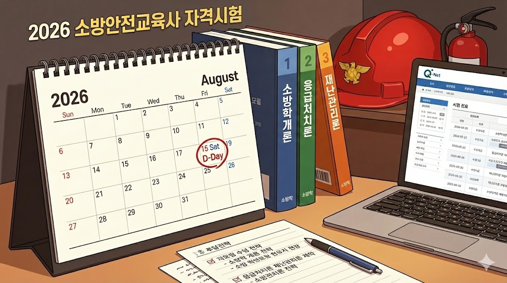 2026년 8월 15일, 결전의 날이 정해졌습니다. 소방안전교육사는 취득 시 소방공무원 가산점은 물론, 안전교육 전문 강사로서의 커리어를 쌓을 수 있는 매력적인 자격증입니다.
